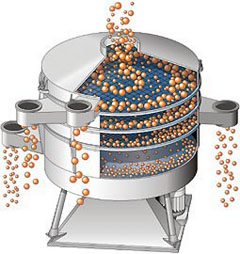 圓振動篩的工作原理為,篩機起動后,篩機振動器帶動振動篩箱一同作定向跳躍式運動,其間,小于篩面孔徑的物料通過篩孔落到下層,成為篩下物,大于篩面孔徑的物料經連續跳躍動運后從排料口排出。完成篩分工作。